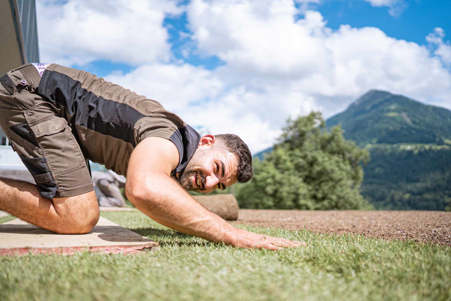 Wir empfehlen eine Mindesthöhe von 10 cm und eine Maximalhöhe von 30 cm Rasenerde.