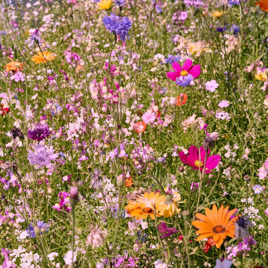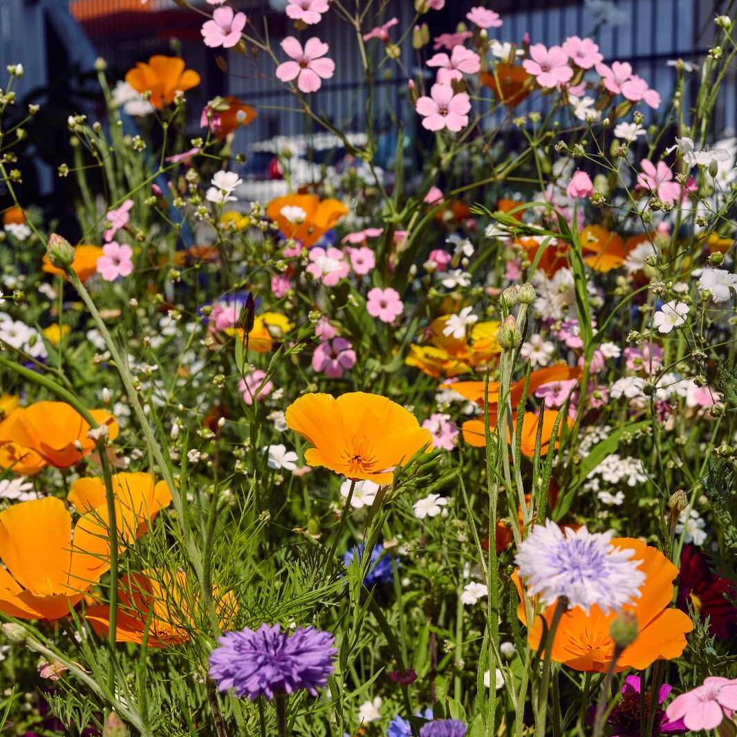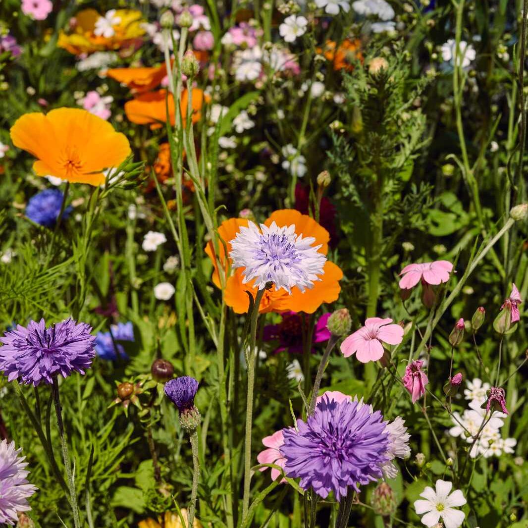 (z.B. Buschwinden, Goldmohn, roter und blauer Lein, Schleierkraut,
