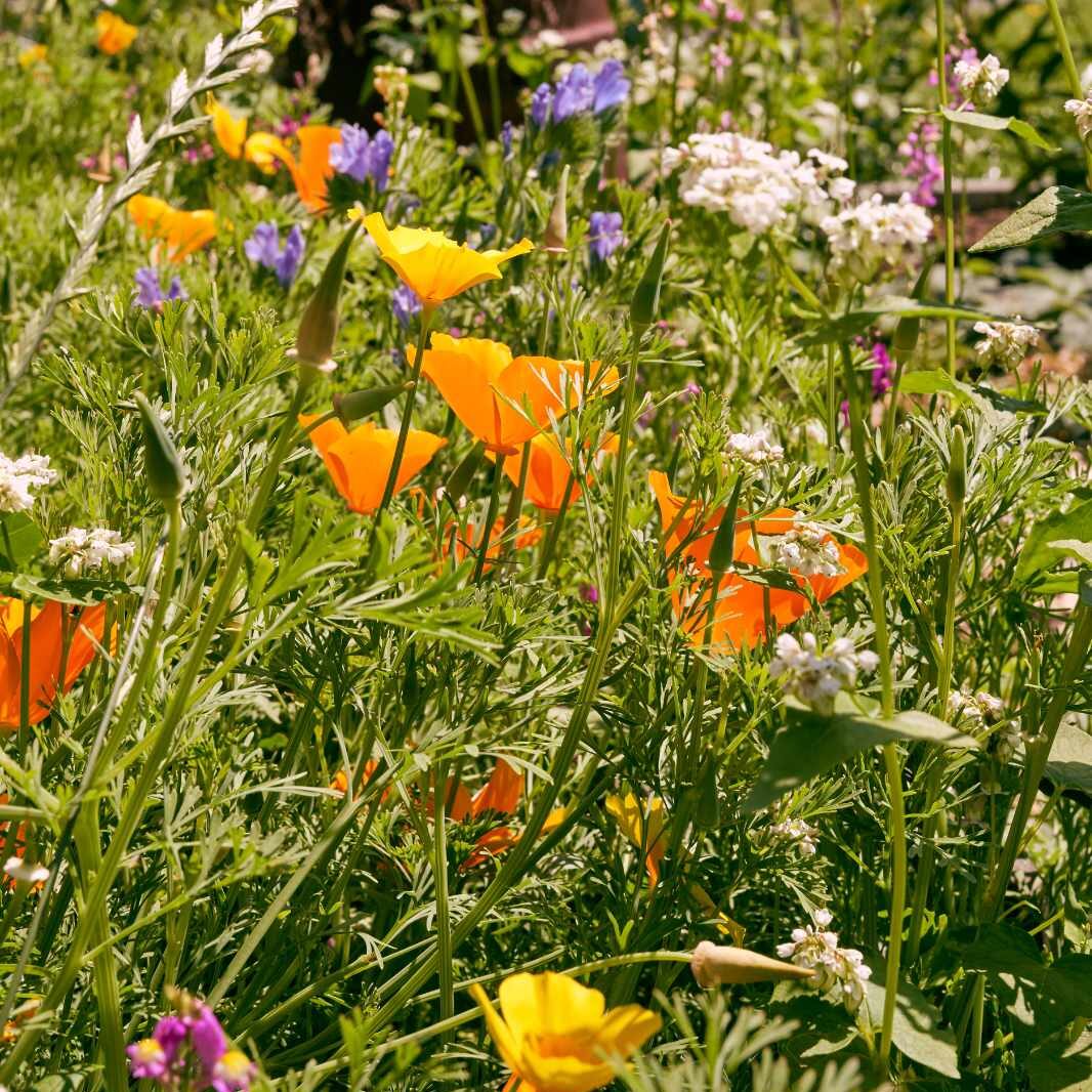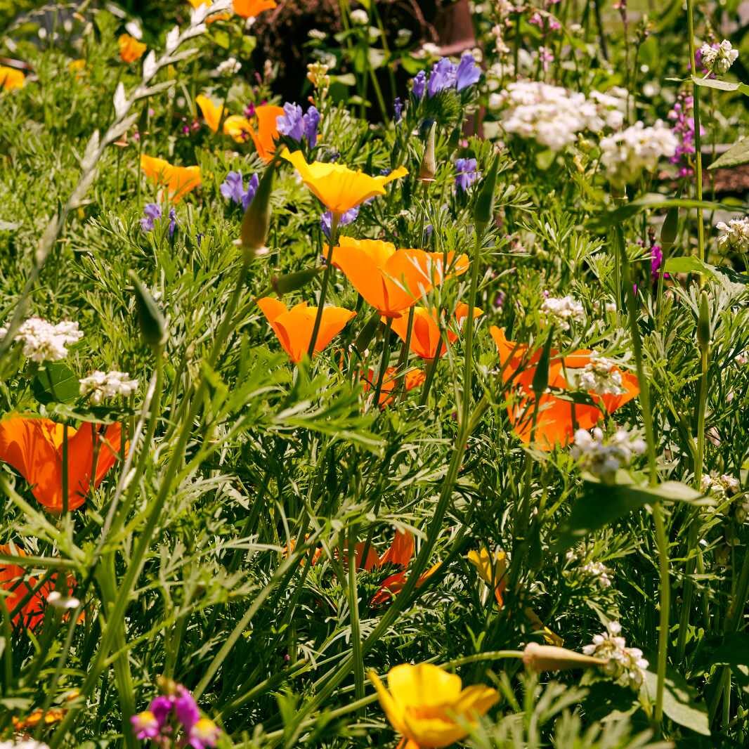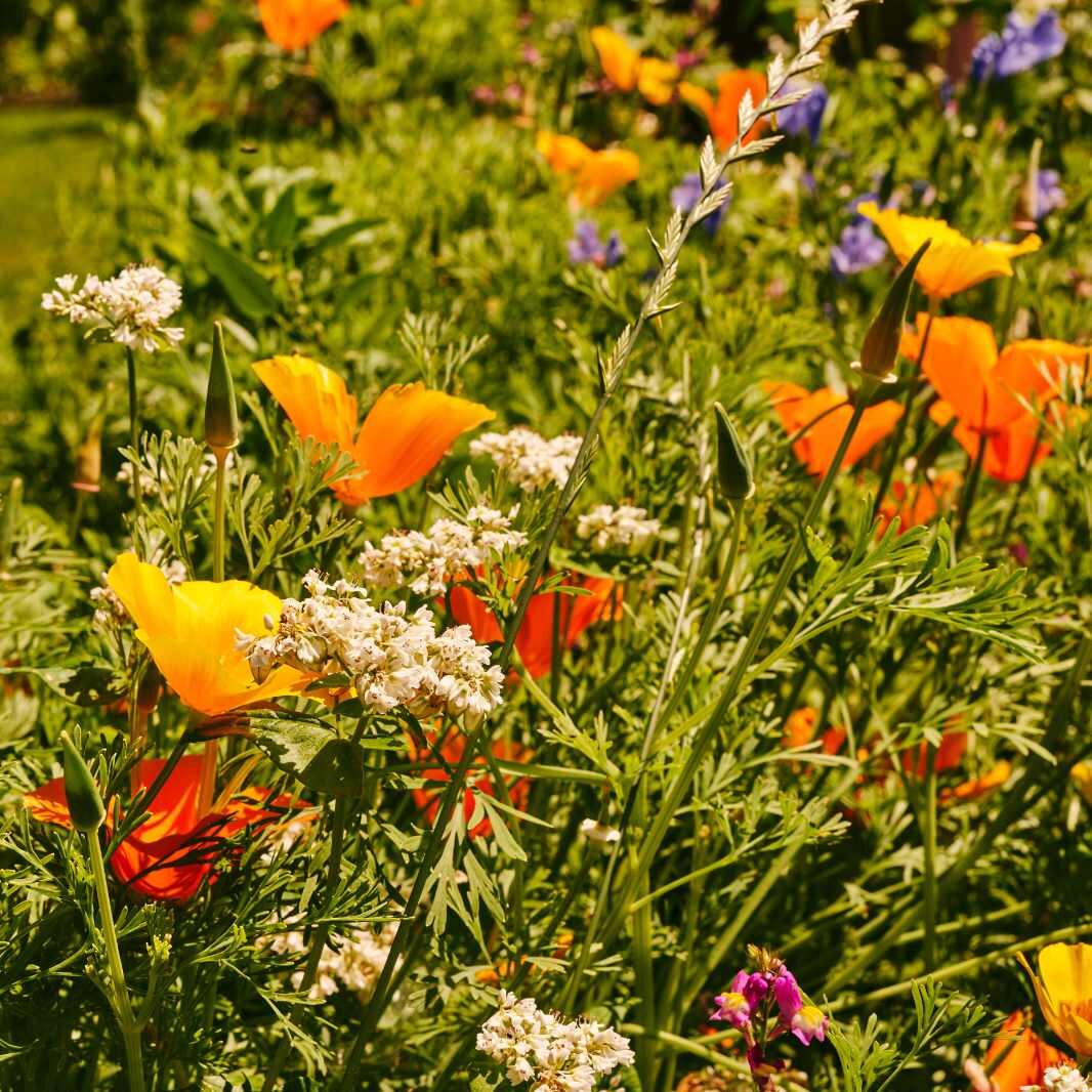 Goldmohn, roter und blauer Lein, Schleierkraut, Klatschmohn,