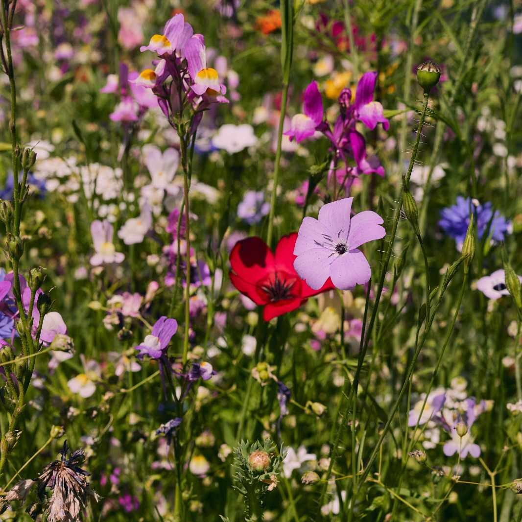 Unsere Samenmischung „Oma´s Blumenwiese“ enthält bis zu 40 Blumenarten und Sorten